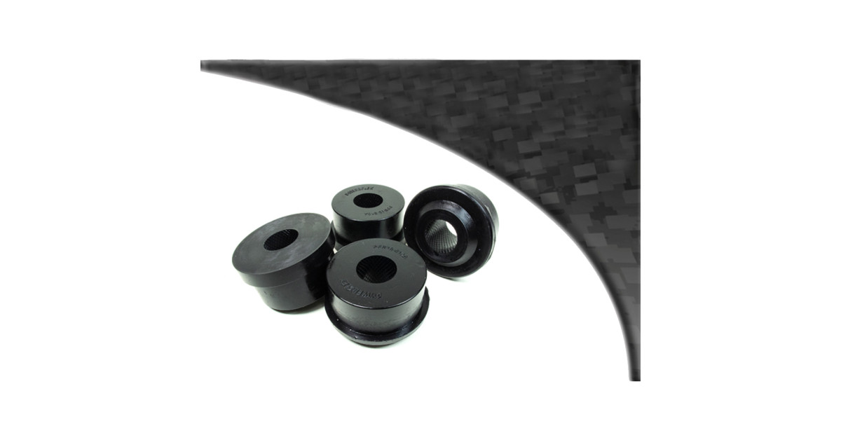 Powerflex hat daher das Material geschaffen, um diese Probleme zu überwinden. Sie entwickelten eine Polyurethanmischung, die es ermöglicht, Teile herzustellen, die 25-30% steifer sind als frühere Gummiprodukte, und dabei genau dieselben geräuschdämpfenden Eigenschaften beibehalten.