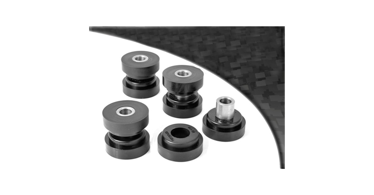 Powerflex hat daher das Material geschaffen, um diese Probleme zu überwinden. Sie entwickelten eine Polyurethanverbindung, die es ermöglicht, Teile herzustellen, die 25-30% steifer sind als frühere Gummiprodukte und dabei genau die gleichen geräuschdämpfenden Eigenschaften aufweisen.
