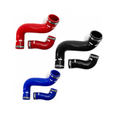 Ein Satz Silikon-Turboschläuche für den Mini/Clubman/Countryman Cooper S ab 2007 (N18-Motor). Standardschläuche können einschränkend sein und noch mehr bei früheren Modellen, die einen Geräuschgenerator enthielten. Auf der kalten Seite installiert, verbessern diese frei fließenden Schläuche das Ansprechverhalten des Turbos über den gesamten Drehzahlbereich. Die verstärkte Silikonstruktur hält höheren Temperaturen und Drücken als der Originalschlauch stand und ist ideal für getunte Motoren. Erhältlich in rot, blau oder schwarz.