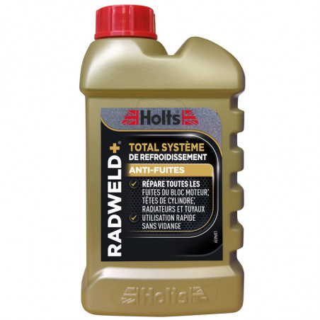 This Holts Radweld Plus Total cooling system stops all leaks in the engine block, the cylinder head, the radiator and the hoses simply by pouring it in the cooling system without draining or flushing the system.
