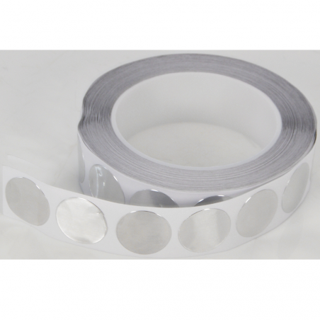 Les adhésifs B-G en aluminium sont fournis en disques prédécoupés de 12mm, 25mm ou 45mm de diamètre.