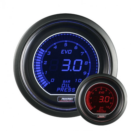Questo manometro è stato premiato 4 volte al SEMA Show nel 2010. La corona e il corpo sono neri e conferiscono a questo manometro uno stile molto RACING. Quando il manometro è acceso, l'animazione sweep accentua questo stile. Il manometro digitale PROSPORT si adatterà perfettamente al tuo interno auto poichè potrai scegliere il colore dell'illuminazione blu o rosso . Il cambio colore è facile e veloce. Questi manometri hanno un bordo molto sottile , ideale per un montaggio in ambienti stretti. Il diagramma consente una facile lettura delle informazioni.